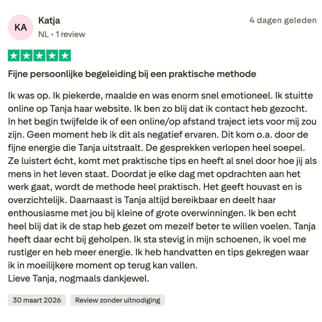 Maar we gaan verder dan de sessie alleen. Ik geloof niet in vage theorieën of eindeloos praten. Ik sta naast je als gids en help je om deze nieuwe inzichten direct te verweven in jouw dagelijkse leven. We kijken hands-on naar jouw leven: hoe bewaak je je grenzen en hoe voorkom je dat je op pure wilskracht doorgaat tot je volledig opgebrand bent?